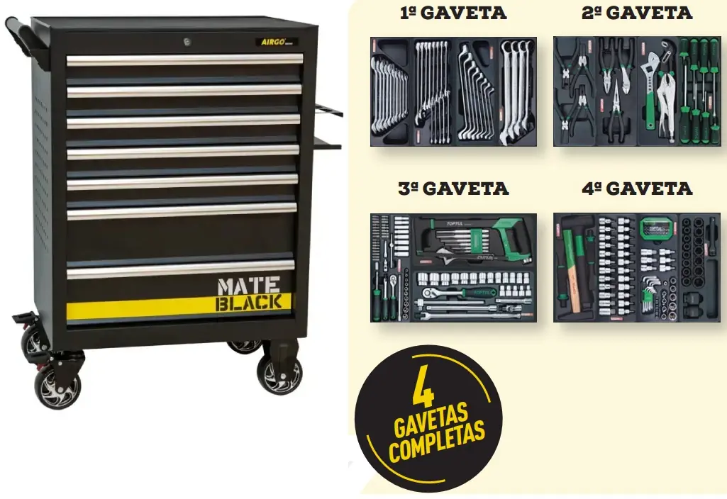 AIRGO CARRO DE FERRAMENTA RACING/246 4 GAVETAS 246PÇS