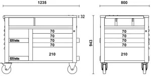 Carrinho de ferramentas com 10 gavetas (588×367 mm) com guias de rolamento de esferas.