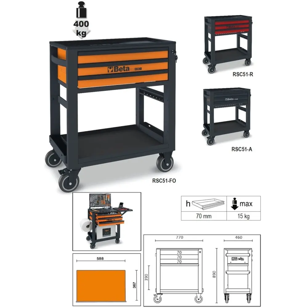 BETA RSC51-R CARRO DE FERRAMENTA ABERTO COR VERMELHA