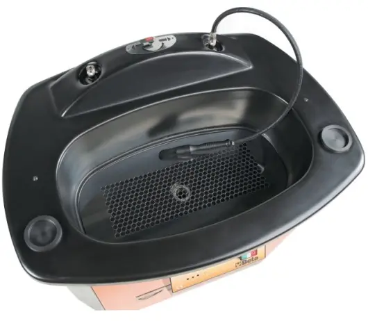Tanque de limpeza manual por recirculação de componentes mecânicos, com aquecimento de fluidos e bactérias