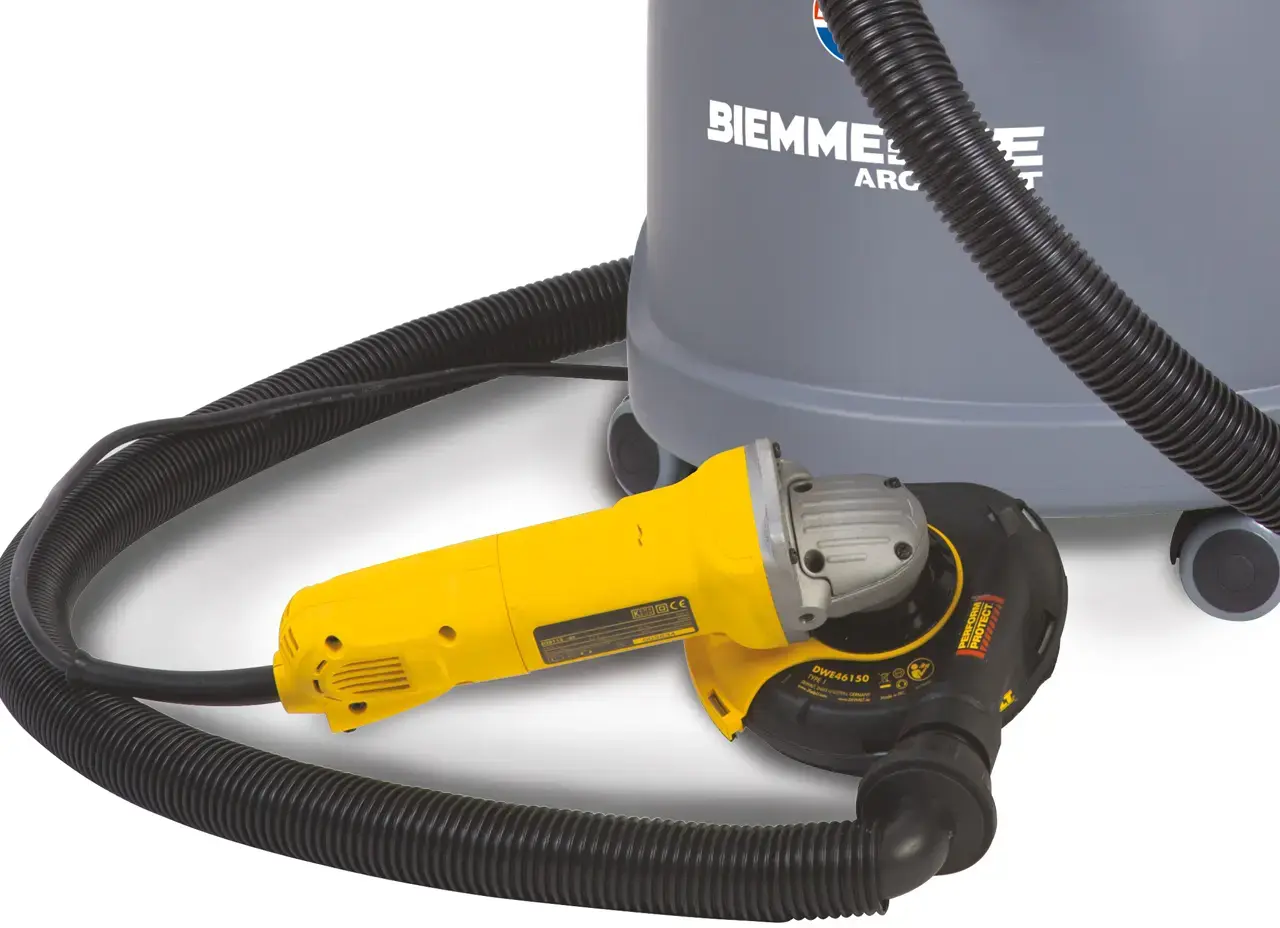 Este sistema elimina a poeira na fonte, evitando que ela se espalhe no ambiente com subsequentes dificuldades respiratórias, e ajuda a manter a área de trabalho limpa e livre de poeira.