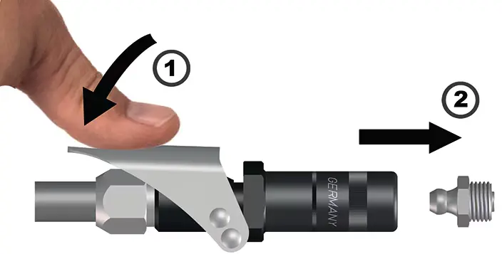 Engate rápido de segurança, com 4 garras em aço com vedação hidráulica de alto desempenho.