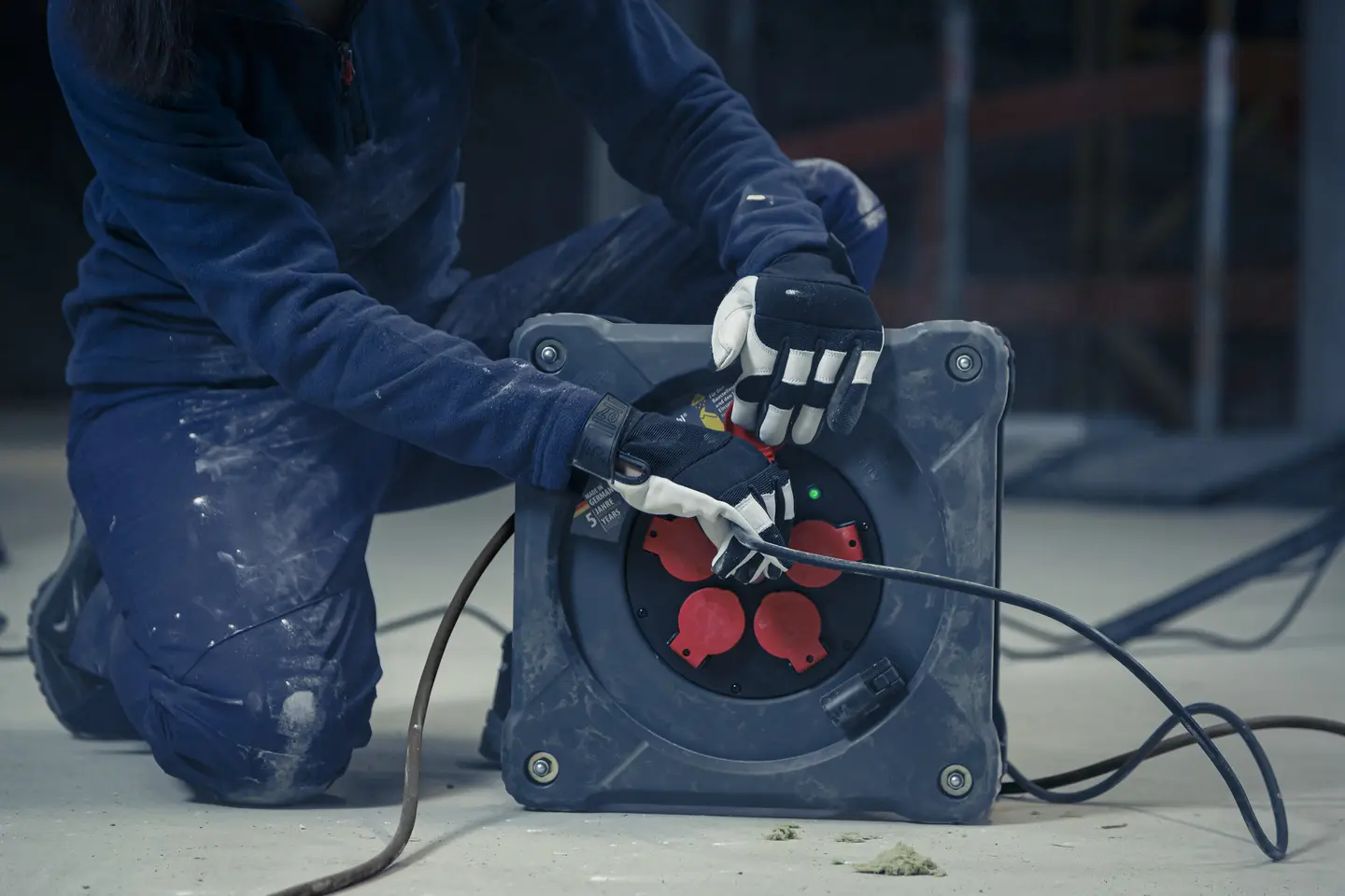 Cabo H07RN-F 3G2.5 de 33+5m, utilização em estaleiros de construção e utilização no exterior, 5 tomadas com proteção, fabricado na Alemanha.