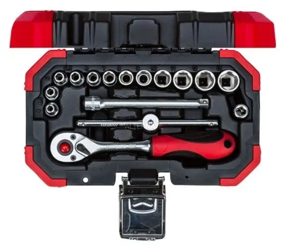 Conjunto de soquetes de 16 peças em 1/4″ Drive da Gedore em um prático estojo de transporte. Número da peça vermelha da Gedore R49003016.