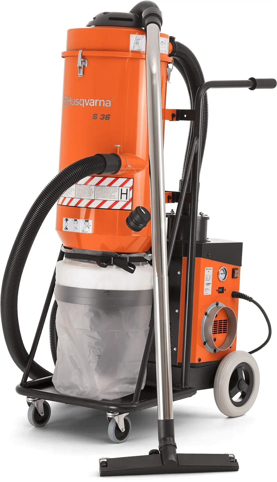 S 36 é um aspirador de pó de HEPA monofásico muito potente para utilizar com as politrizes Husqvarna PG 530 (1 fase), PG 450, PG 400 e PG 280, bem como escarificadores de tamanhopequeno a médio porte, trituradores. Este coletor de pó profissional é projetado para atender demandas rigorosas. Três grandes motores de vácuo de nível comercial oferecem energia suficiente. Equipado com três filtros HEPA H13 testados e certificados independentemente e um pré-filtro em forma de cone maciço com mais de 4,5 m² de mídia. Isso resulta em coleta de poeira superior, mesmo de lixar fino e poeira de gesso. Os recursos incluem limpeza pré-filtro Jet Pulse, horímetro e medidor de vácuo para controle de filtro. As rodas não marcantes são livres de punção e fecham na frente.