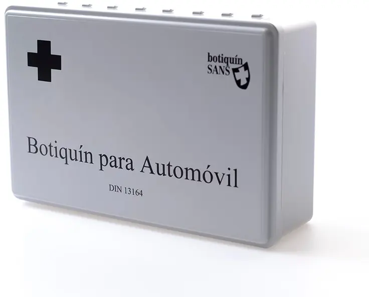 Kit de primeiros socorros cinza, feito de plástico injetado com acabamento brilhante especialmente projetado para o carro, camião ou veículos por suas dimensões e conteúdo.