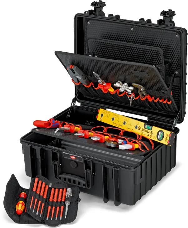 Equipado com 26 ferramentas da marca, parcialmente testadas por VDE de acordo com o DIN EN 60900