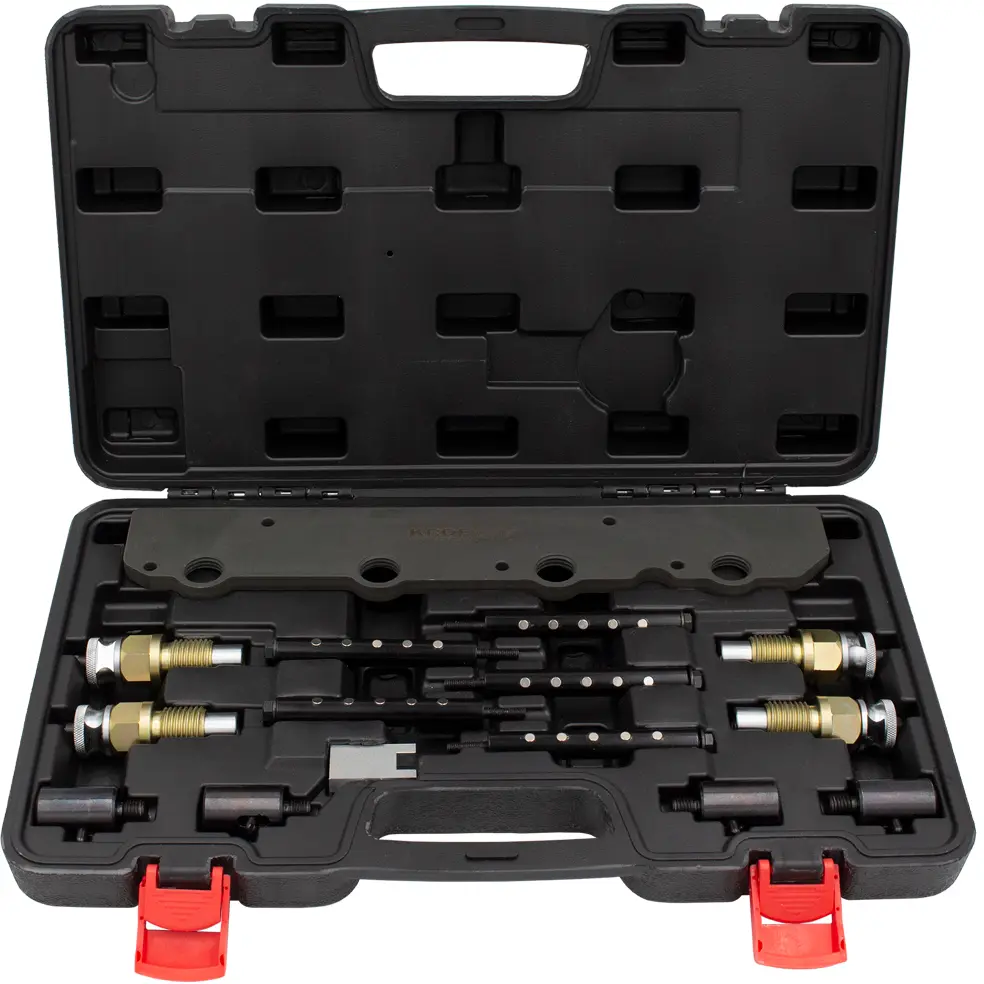 Descrição: Este kit de ferramentas foi concebido para extrair e encaixar os injetores de gasolina com corpo de plástico utilizados em alguns motores BMW e MINI, reduz a hipótese de danos aos injectores enquanto os retira