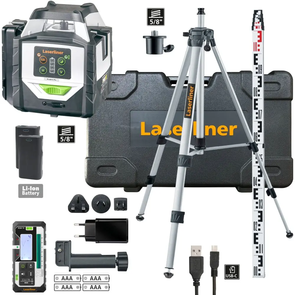 Descrição: O laser híbrido de 360° projeta um círculo laser horizontal e duas linhas de laser verticais individualmente comutáveis e disponibiliza uma função de inclinação manual. Este laser híbrido é, portanto, perfeito para o alinhamento preciso em interiores e exteriores, por exemplo, na instalação de cofragens para pavimentos de betão, na instalação de estantes para carga em armazéns ou na construção de terraços. O Anti-Drift-System protege eficazmente contra erros de nivelamento que possam ser causados por alterações involuntárias da posição. O conjunto é complementado por dois potentes HighCapacityPacks com tecnologia de iões de lítio, pelo tripé compacto de 175 cm e pelo recetor RangeXtender M70 de alta qualidade com visor milimétrico.