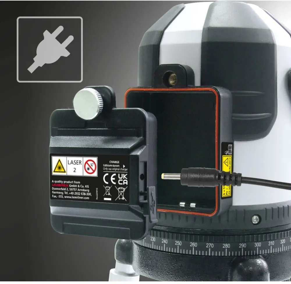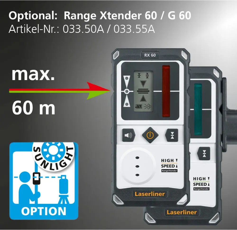 Com o recetor laser opcional, as linhas de laser podem ser detetadas até 40 m de alcance ideal para aplicações no exterior