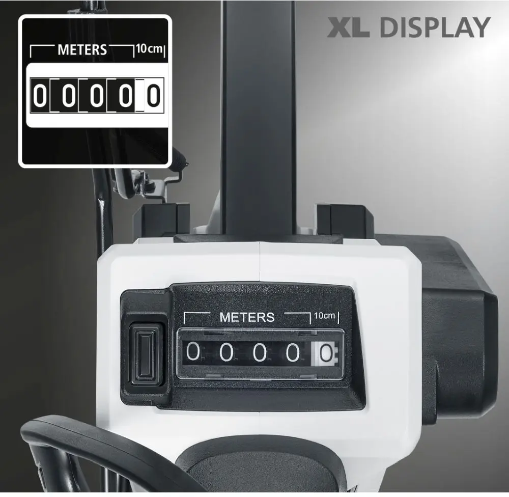 Descrição: Este dispositivo de medição de distância de rolo, preciso até o centímetro mais próximo, mede distâncias de até 9.999,99 metros e é adequado para uso em linhas retas ou curvas, bem como em superfícies onduladas. Um indicador móvel fornece informações sobre a posição inicial e final exata. O contador adiciona ou subtrai dependendo da direção do movimento. O dispositivo tem uma função de retenção para travar o valor atual no visor e uma empunhadura robusta e emborrachada. Uso conveniente devido ao freio acessível e configuração zero, bem como um visor com dígitos grandes e fáceis de ler para o valor medido. Fácil de transportar devido ao design dobrável.