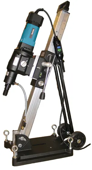 Refrigeração da broca a água para os furos em betão, conseguindo cortes mais rápidos com menor desgaste.