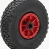 Roda pneumática, jante metálica com rolamento de esferas.