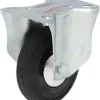 Roda em borracha preta, núcleo em polipropileno com rolamento de rolos.