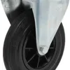 Roda em borracha preta, núcleo em polipropileno com rolamento de rolos.