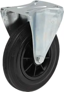 Rodízio fixo, suporte em aço estampado, zincado brilhante.