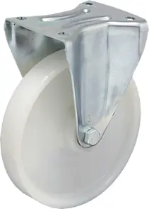 Rodízio fixo, suporte em aço estampado, zincado brilhante.
