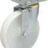 Rodízio giratório, com travão (bloqueio simultâneo), suporte reforçado em aço estampado com duas pistas de esferas, zincado.