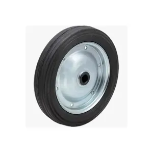 Roda cinza em borracha injectada, núcleo e blindagens em polipropileno, cubo com rolamento de esferas.