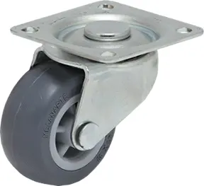 Rodízio giratório com duas pistas de esferas, suporte em aço estampado, zincado brilhante.