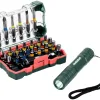 Pontas em aço cromo-vanádio (qualidade S2); pontas com codificação por cores; caixa robusta de elevada qualidade com design especial Metabo, com gancho de suspensão com furo tipo “Euroloch”; expositor atrativo