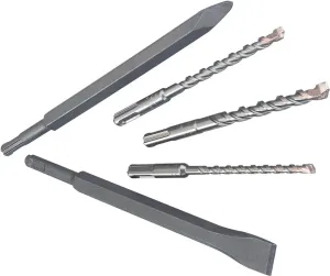Composto por 1 broca de percussão Ø 6, 8, 10 mm, 1 ponteiro e 1 escopro plano