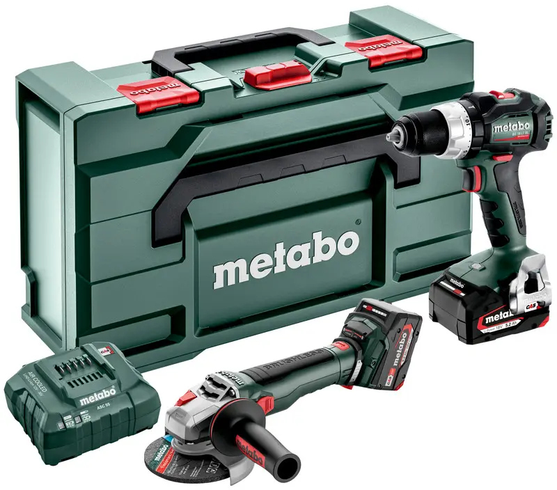 Berbequim-aparafusadora sem fio BS 18 LT BL, rebarbadora angular sem fio WB 18 LT BL 11-125 Quick, porca de fixação M-Quick, resguardo de proteção, flange de apoio, punho adicional, filtro de proteção contra poeiras, 2 baterias Li-Power Extreme 18V-5,2Ah, carregador ASC 55, metaBOX 165 L