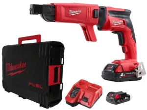 Aparafusadora com controlo de profundidade M18 FUEL™, encabadouro 1/4″ hex, torque máximo 13Nm, carregador para parafusos incorporado. Fornecida com 2 baterias M18B2 e carregador rápido M12-18FC, em HD-box