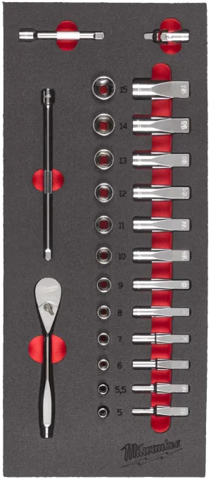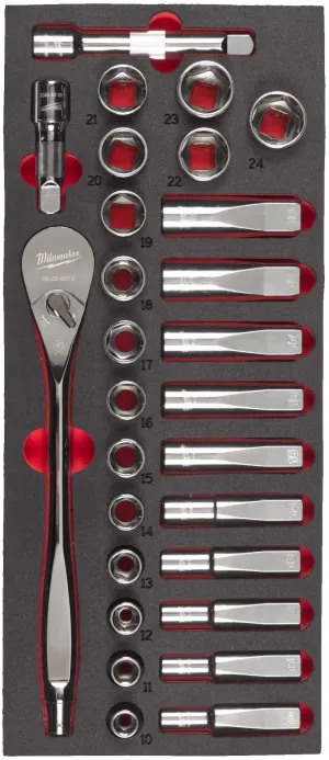 1 – ESPUMA COM 28 PEÇAS DE CHAVE DE ROQUETE E CHAVES