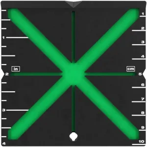 Placa de alta visibilidade para deteção de laser com escala métrica e imperial.