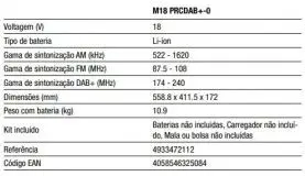 CARACTERÍSTICAS DE PRODUTO M18 PRCDAB+-0