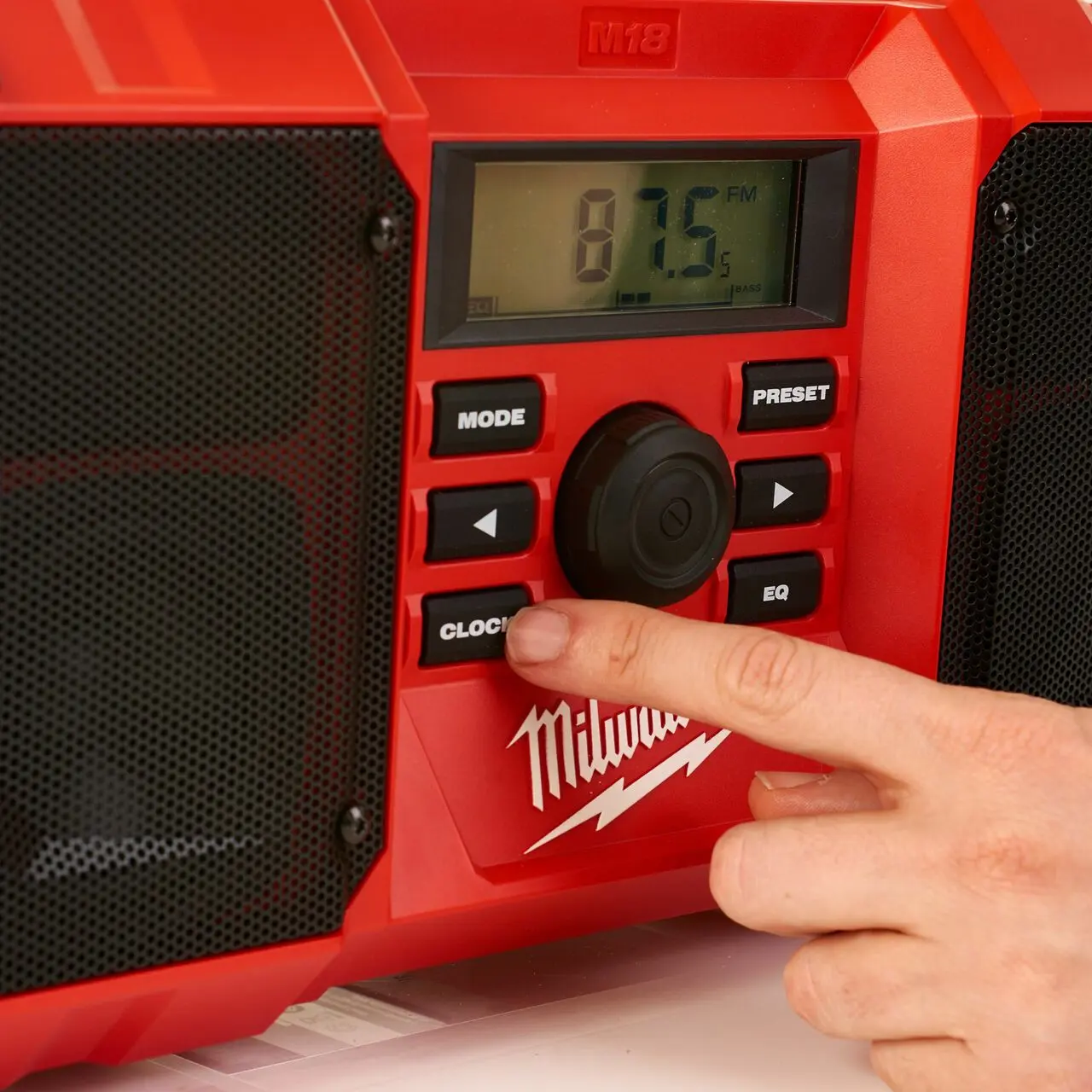 Rádio de obra M18™, híbrido AC/DC. Inclui cabo de entrada auxiliar. Fornecido em versão zero, sem baterias nem carregador