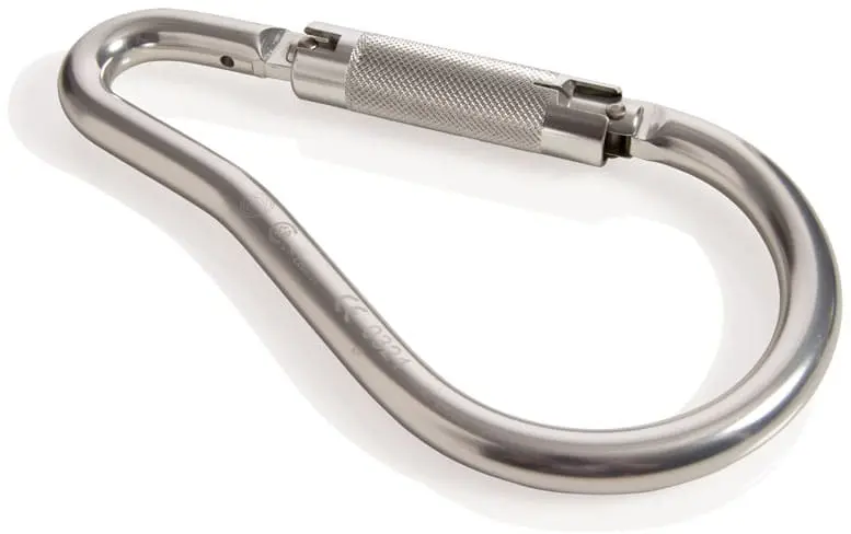 Mosquetão manual com abertura de 1/4 de volta numa só manobra.