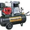 Compressores com motor a gasolina, supervisionados por HONDA. Montado em 100lts tanque. Motor de explosão HONDA em conformidade com os mais rigorosos regulamentos de emissão Regulador de pressão superdimensionado com saída de ar dupla. Barra adicional para levantar a unidade por meio de uma talha ou talha de carga. O punho duplo e as rodas semi-pneumáticas permitem o seu transporte em qualquer tipo de veículo. Rodas semipneumáticas, nem Incham nem desincham. Grelha de metal robusta para a proteção de todos os elementos móveis