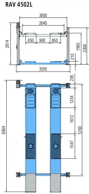 RAV 4502L – equipado com placas de pressão e recessos para plataformas giratórias, largura da plataforma = 650 mm (espaçamento ajustável)