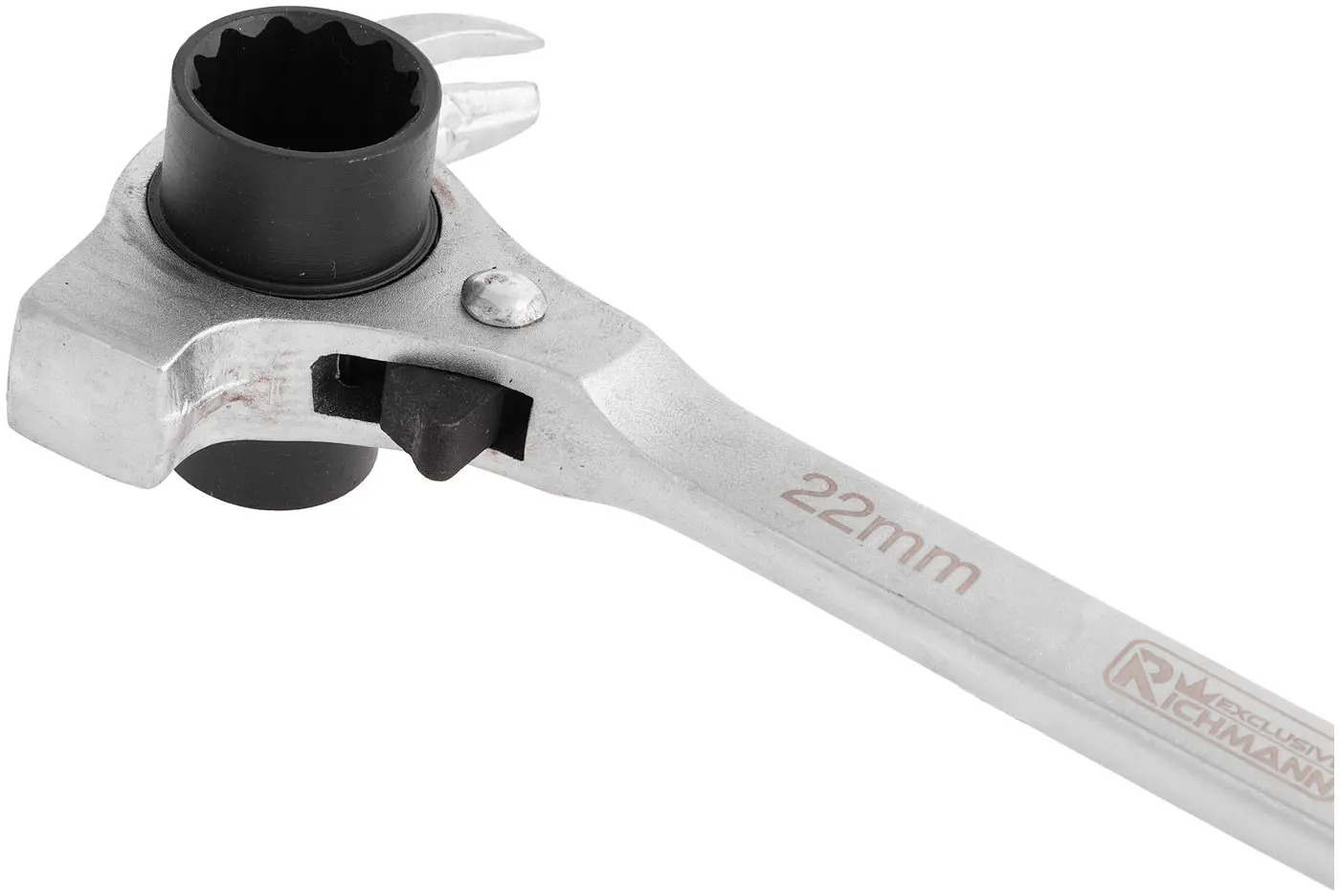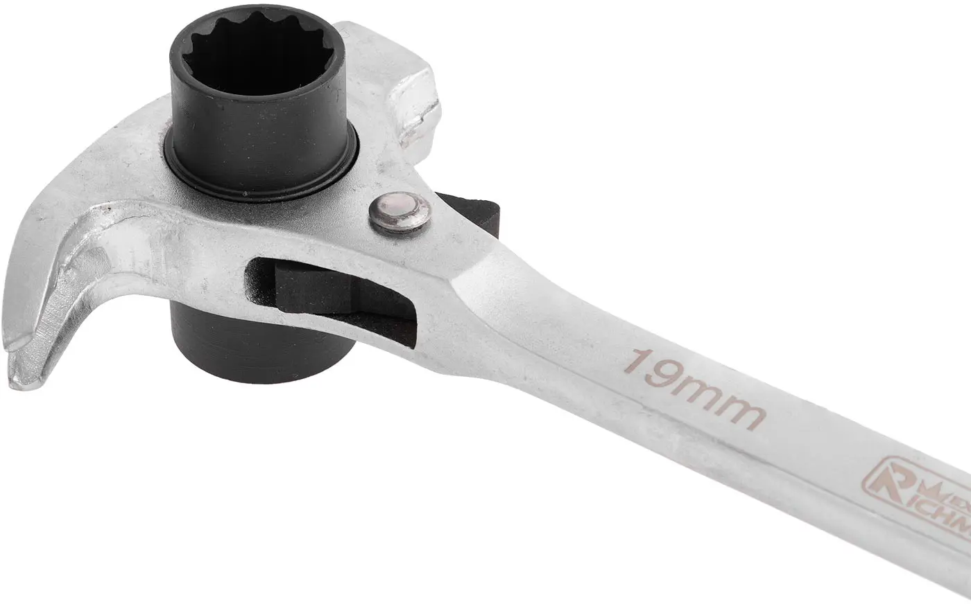 Fabricada em aço cromo-vanádio (CR-V). Mecanismo de catraca de 72 dentes.