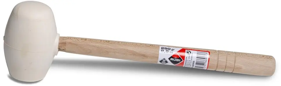 RUBI oferece, ao colocador profissional de cerâmica, os maços de borracha de faces planas e esféricas com três pesos: 250, 500 e 750 gr, assim como a tradicional borracha preta e a vantajosa borracha branca. Esta vantagem, da borracha branca, permite bater nas peças cerâmicas sem deixar marcas de borracha.