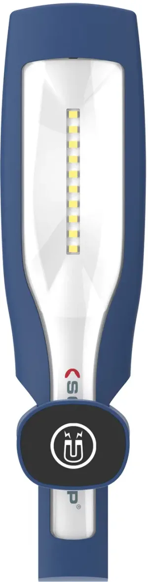 Com três fortes suportes magnéticos embutidos e os dois ganchos de suspensão retráteis, a lâmpada de mão LED permite total flexibilidade.