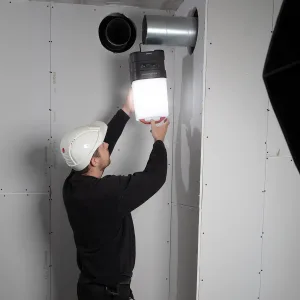 AREA 10 CAS é uma luz de trabalho que proporciona uma luz difusa e uniforme até 10.000 lúmens. É ideal para o utilizador profissional que necessita de uma iluminação potente e eficiente de toda a área de trabalho para realizar qualquer tipo de reparação, pintura ou construção.