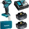 É fornecido com duas baterias «20V Max» (18 V) de 2,0 Ah «Keep Cool™», um carregador rápido, uma caixa coletora de relva e chave.