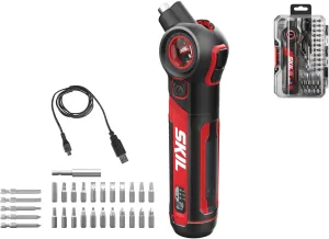 A aparafusadora sem fio SKIL 2714 é a escolha ideal para os seus trabalhos de aparafusamento em espaços limitados. A sua cabeça giratória de 3 posições garante uma melhor ergonomia, permitindo-lhe realizar projetos em espaços exíguos com facilidade. Com 3 ajustes de binário e um botão de ativação para apertar/desapertar fácil de utilizar, esta aparafusadora sem fio proporciona o máximo controlo durante uma variedade de aplicações. A comodidade da aparafusadora sem fio é ainda melhorada pela bateria de iões de lítio integrada, que pode ser recarregada sem esforço através da porta USB-C integrada. Compacta e leve, esta ferramenta foi concebida com um Softgrip para manuseamento confortável. O bloqueio do fuso permite-lhe usar força manual extra quando necessário, por exemplo para terminar de apertar ou começar a soltar parafusos e pernos. A boa visibilidade do seu trabalho é garantida pela luz LED. A bucha sextavada (6,35 mm / ¼”) permite trocas rápidas de broca.