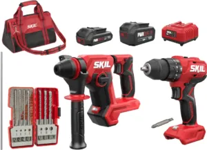 A SKIL 3070 «20V Max» (18 V) é uma aparafusadora/berbequim de percussão sem fio e sem escovas com função de impacto. Esta ferramenta é ideal para perfuração em madeira, metal e mesmo em alvenaria e para os trabalhos de aparafusamento mais exigentes. O motor sem escovas é mais rápido, mais resistente e dura 10 vezes mais do que um motor com escovas comparável. Os 17 ajustes de binário asseguram resultados de aparafusamento precisos. Graças ao seletor de funções, pode alternar facilmente entre aparafusamento, perfuração e perfuração com percussão. Dispõe de duas velocidades que poderá utilizar para perfuração rápida ou para aplicações exigentes de perfuração e aparafusamento. Esta ferramenta dispõe de uma bucha de aperto rápido em metal com um bloco de 13 mm com bloqueio que evita o deslizamento das pontas. O bloqueio automático do fuso facilita a mudança de acessórios. Resumidamente, esta ferramenta versátil oferece verdadeiramente tudo o que precisa: tecnologia fiável de bateria de iões de lítio, velocidade variável para controlo total e a luz LED assegura a boa visibilidade do seu trabalho. O indicador do nível de carga da bateria patenteado exibe comodamente o nível de carga da bateria. A SKIL 3070 HA é fornecida numa robusta mala de transporte com duas baterias «20V Max» (18 V) 4 Ah «Keep Cool», um carregador rápido, uma ponta de aparafusamento dupla e um clipe de fixação ao cinto.