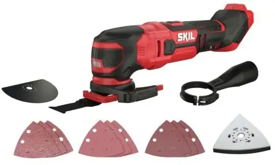 A SKIL 3620 «20V Max» (18 V) é uma multiferramenta sem fio potente com velocidade variável para os melhores resultados em vários materiais. Esta multiferramenta sem fio dispõe de um arranque suave eletrónico para um aumento gradual da velocidade até ao máximo. Boa visibilidade do seu trabalho graças à iluminação LED. O batente de profundidade incluído, que é ajustável até 60 mm, evita o desgaste rápido dos acessórios e o dano acidental dos materiais por baixo da peça a ser trabalhada. Ao trocar os acessórios fornecidos, pode utilizar esta multiferramenta para uma grande variedade de trabalhos de bricolage tais como lixar, serrar e cortar. A multiferramenta é compatível com os acessórios básicos «Starlock» e acessórios «OIS» amplamente disponíveis, de forma que encontrará sempre o acessório adequado para o seu trabalho. Para trabalhar de forma mais limpa durante o trabalho de lixamento, pode conectar esta ferramenta ao adaptador para aspirador fornecido que é compatível com a maioria dos aspiradores de tamanho padrão. Além disso, o design ergonómico com Softgrip assegura um conforto de trabalho extra. A SKIL 3620 CA é fornecida com 9 folhas de lixa, uma placa base de lixamento, um batente de profundidade, lâmina de serra segmentada, lâmina de corte por imersão e adaptador para aspirador. A bateria não está incluída.