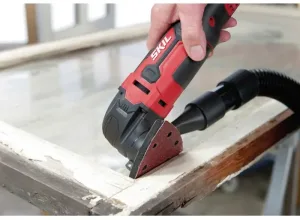 A SKIL 1491 é uma multiferramenta potente de 300 W com velocidade variável para os melhores resultados em vários materiais. Boa visibilidade do seu trabalho graças à iluminação LED. O batente de profundidade incluído, que é ajustável até 60 mm, evita o desgaste rápido dos acessórios e o dano acidental dos materiais por baixo da peça a ser trabalhada. Ao trocar os acessórios fornecidos, pode utilizar esta multiferramenta para uma grande variedade de trabalhos de bricolage tais como lixar, serrar e cortar. A multiferramenta é compatível com os acessórios básicos «Starlock» e acessórios «OIS» amplamente disponíveis, de forma que encontrará sempre o acessório adequado para o seu trabalho. Para trabalhar de forma mais limpa durante o trabalho de lixamento, pode conectar esta ferramenta ao adaptador para aspirador fornecido que é compatível com a maioria dos aspiradores de tamanho padrão. Além disso, o design ergonómico com Softgrip assegura um conforto de trabalho extra. A SKIL 1491 DB é fornecida com 9 folhas de lixa, uma placa base de lixamento, um batente de profundidade, lâmina de serra segmentada, lâmina de corte por imersão e adaptador para aspirador.