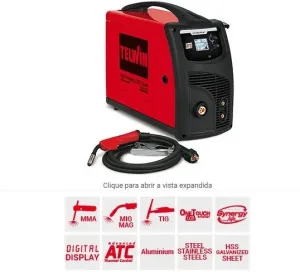 Completo com tocha MIG-MAG, suporte de electrodo, cabo e braçadeira de terra.