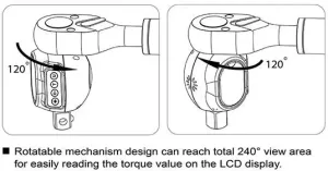 Precisão de torque: CW ± 2% e CCW ± 2% de tolerância do valor de escala definido (DTA-030N: CW ± 3% e CCW ± 3%)