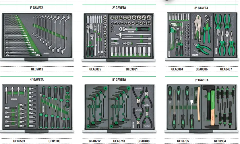 1ª Gaveta: GVD2801- Jogo de chaves mistas e de chaves luneta