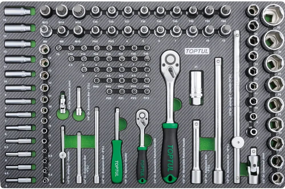 TOPTUL GEDB117 JOGO DE CHAVES DE CAIXA 1/4″ E 1/2″ 111 PCS