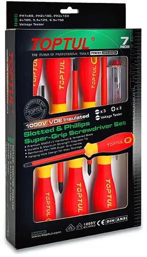 TOPTUL GFE-0701 JOGO DE CHAVES FENDA E PHILLIPS PRO PLUS VDE 7PÇS