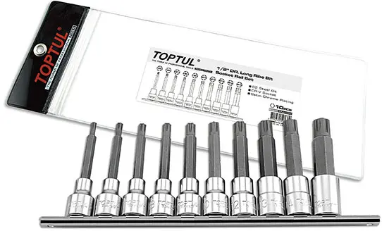 TOPTUL JOGO CHAVES DE CAIXA BITS LONGOS 6 CANELADOS 1/2″ 10PÇS